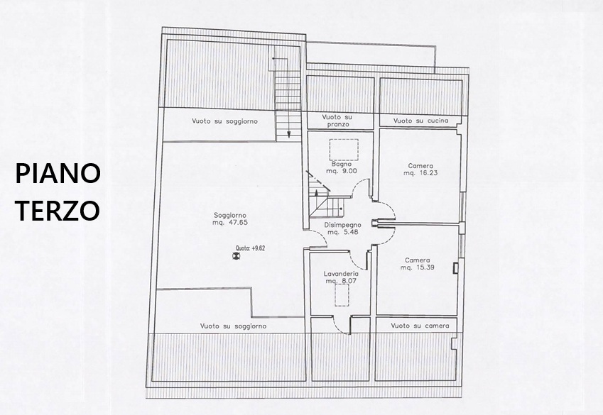 – Superficie: Circa 280 mq distribuiti su due livelli (secondo e terzo piano).